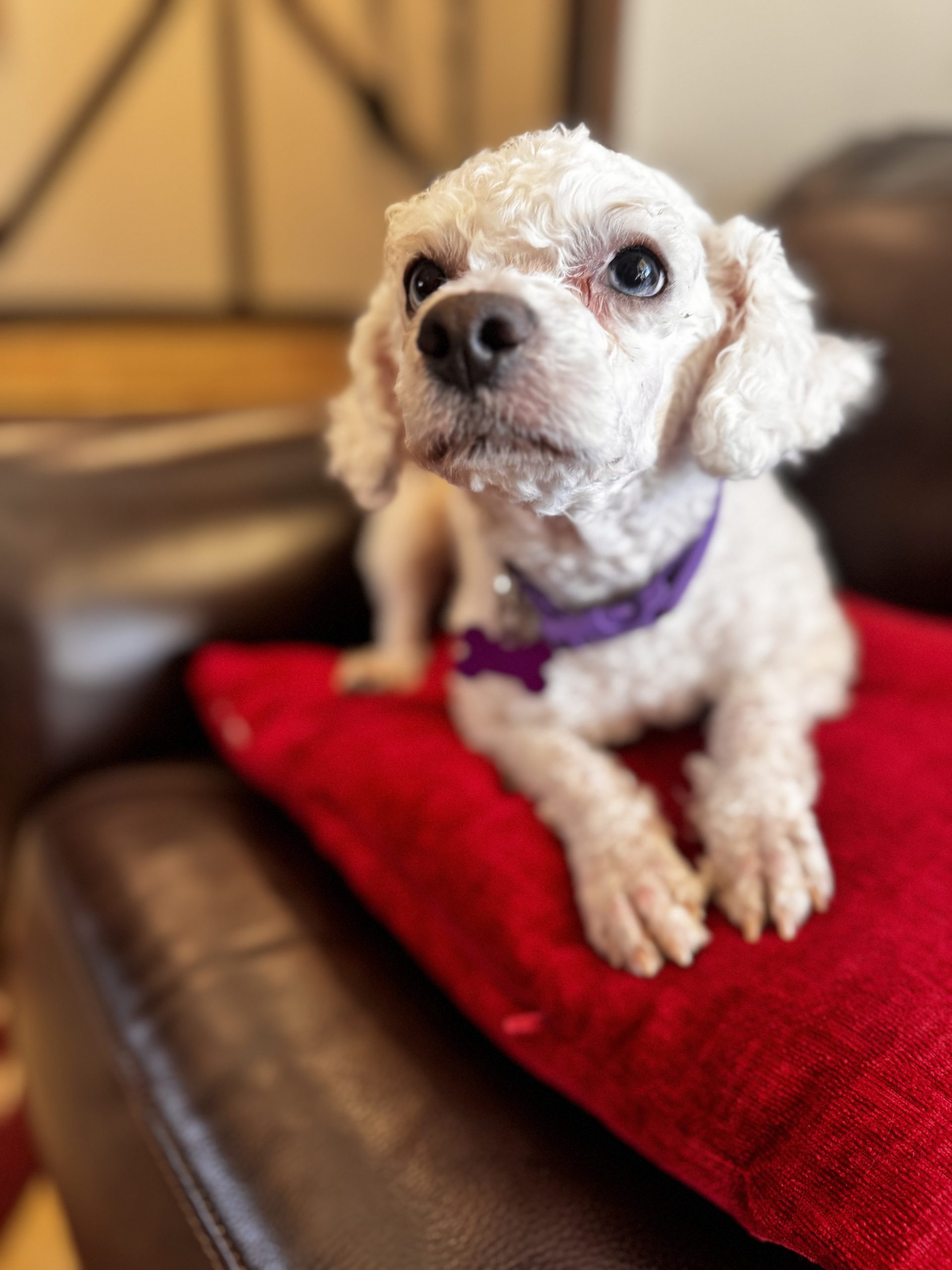 I’m a five-month-old adorable little white fluff with sparkling blue eyes that will absolutely melt you the moment I look your way. I’m a playful, happy boy who loves my humans, loves to explore, and loves having fun. Everything in life is exciting to me right now, and I bounce through my days with joy, curiosity, and lots of puppy enthusiasm.